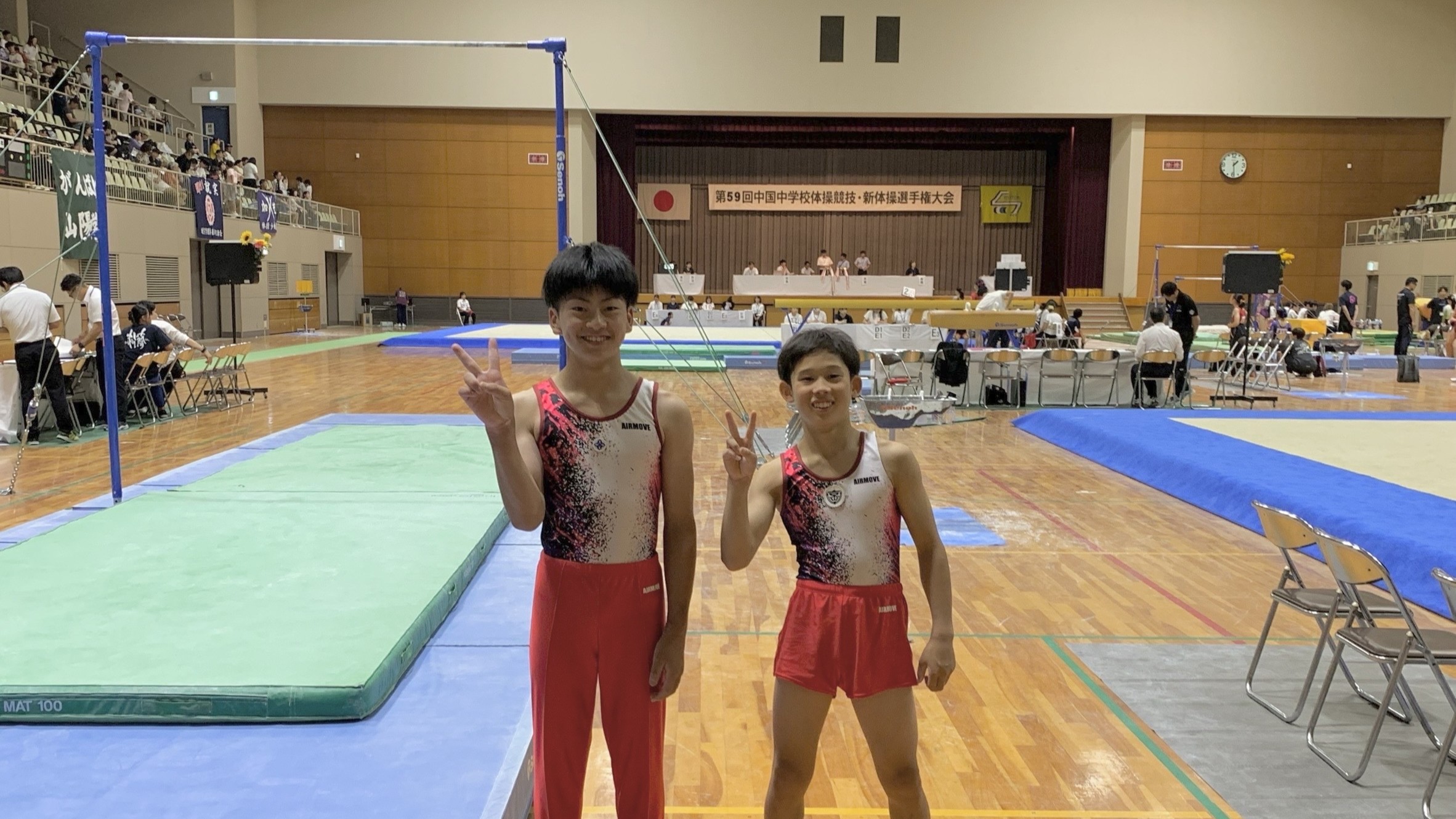 鳥取県米子市で行われた中国中学校体操選手権に県大会を勝ち抜いた2人が出場してきました。予選を見事突破して8/22~8/24に長崎行われる全国大会への切符を勝ち取りました。